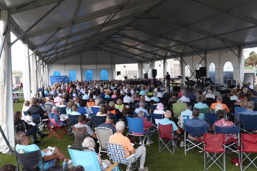 - Service currently taking place under the big white tent.